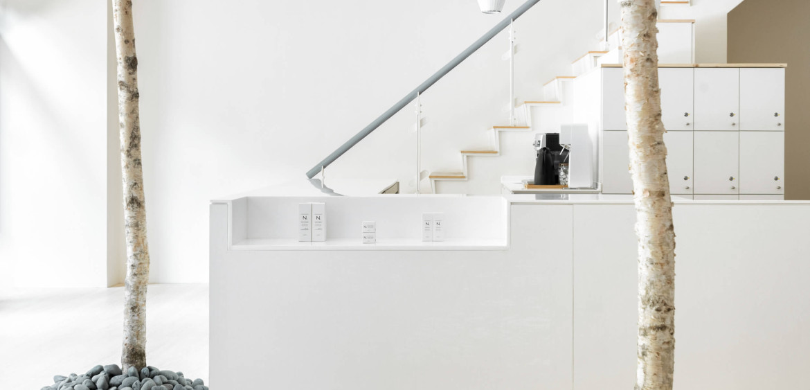 「米容是夏日午後的檸檬塔,冬夜走回家時,街道旁迎接平安夜的那扇櫥窗」   期盼米容為一個親近而真切的環境,於精簡的預算裡,水平式的線條成了它骨幹的基底,保持整體線條的極簡,再佐以入白樺木的枝幹,希望樹木的加入,讓簡單是一份輕鬆,沒有距離地享受「米容」。陽光灑進,映在天然木材上,我們透過雙手傳遞溫度與笑容,而暖白色的溫柔是我們想帶給你的理想之所。